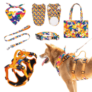 Designer Pet Bundle Sets - Harness, Leash & Bandana Combos | 3 Sizes, 11 Arts