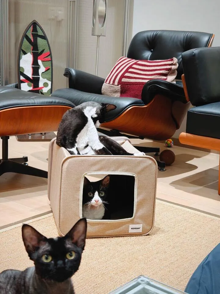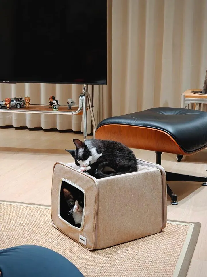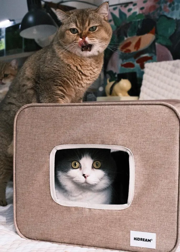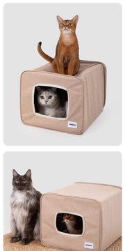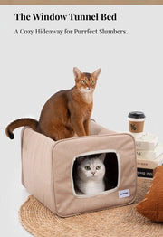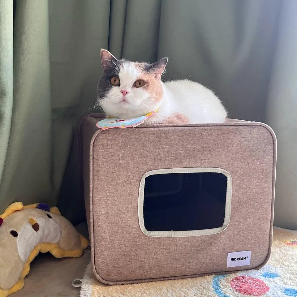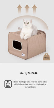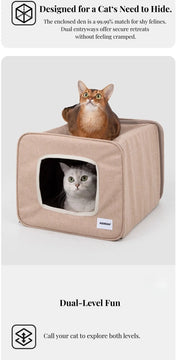 A semi-enclosed indoor cat house designed for cats who love privacy without feeling closed in. The curved dual-entrance tunnel allows easy access from both sides, while the structured shape offers a safe, relaxing space for daily naps