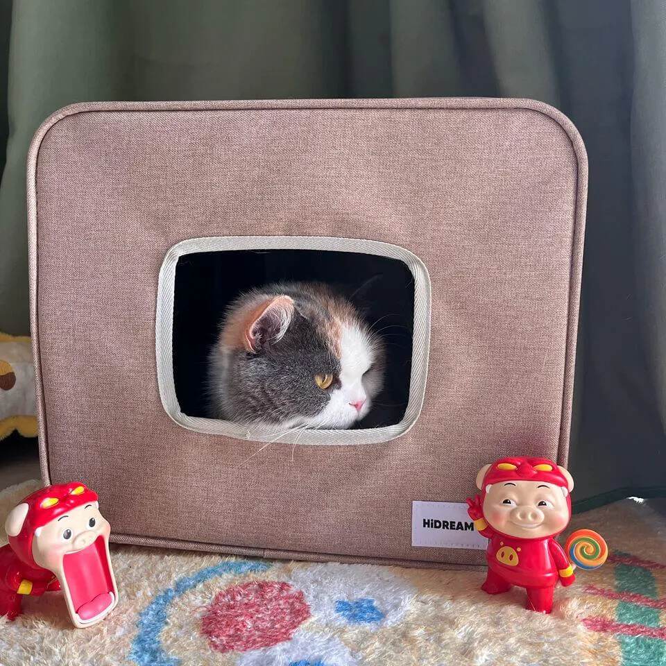 With its soft fabric, gentle structure, and open tunnel design, this cat cave becomes a familiar comfort — quietly waiting, always welcoming.