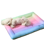 A rainbow-hued cooling bed filled with gel that keeps pets comfortable without ice or electricity. Spacious, waterproof, and supportive for both cats and dogs.